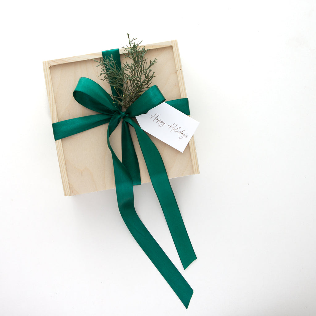 - Kiefernholzkiste | festliches Band + winterliche Grüntöne