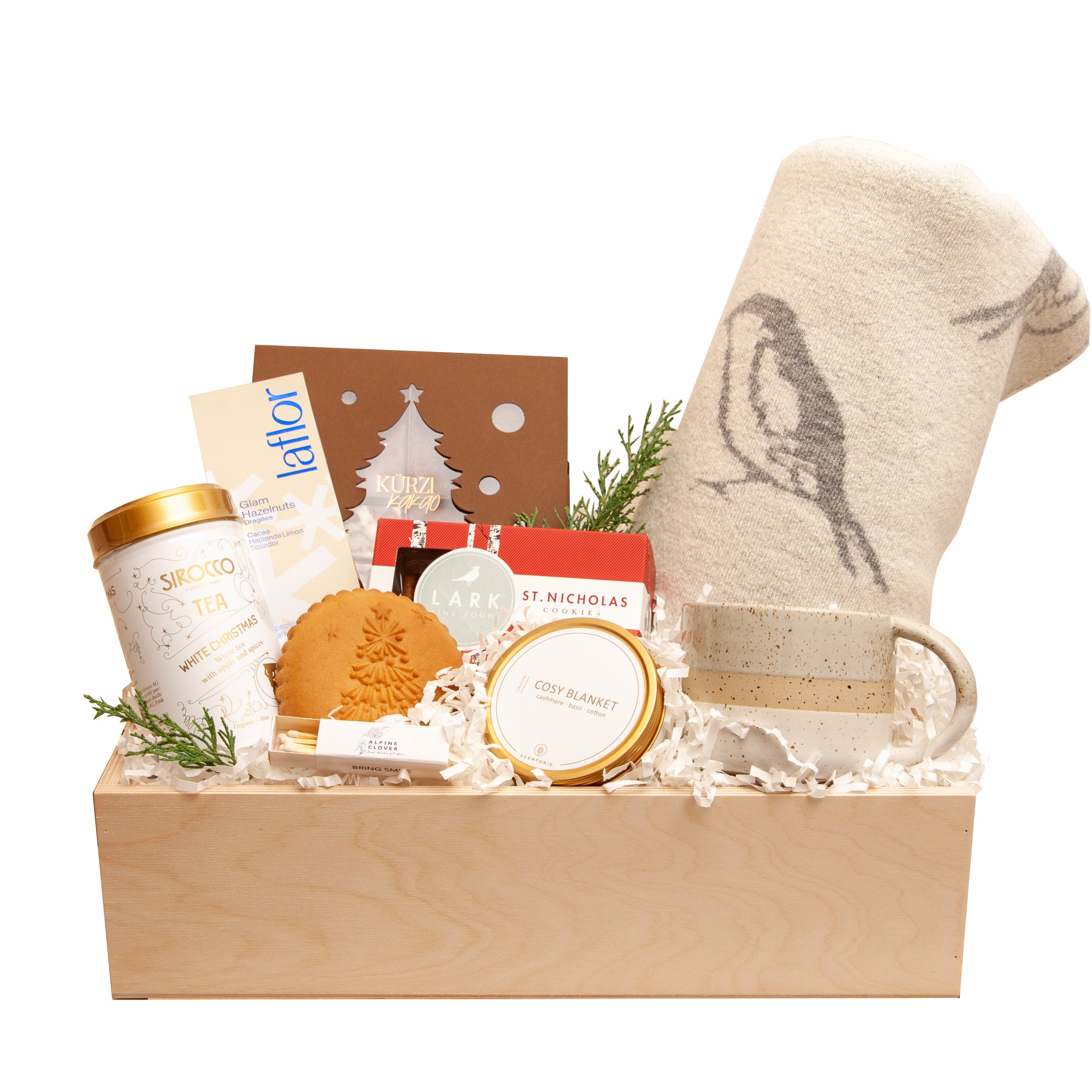 Embrace the magic of Christmas with our Silent Night gift box — a thoughtfully curated collection designed for those who cherish peace and comfort. This special set features a luxurious sheep wool blanket with a timeless design, a handcrafted mug perfect for savoring organic tea, a gently scented candle to create a serene warm atmosphere, and carefully selected gourmet goods to delight the senses. Perfect Merry Christmas gift!